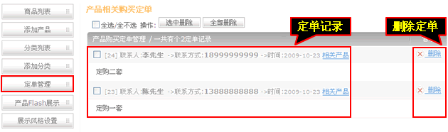 5、定单管理可以对定单进行查询、删除