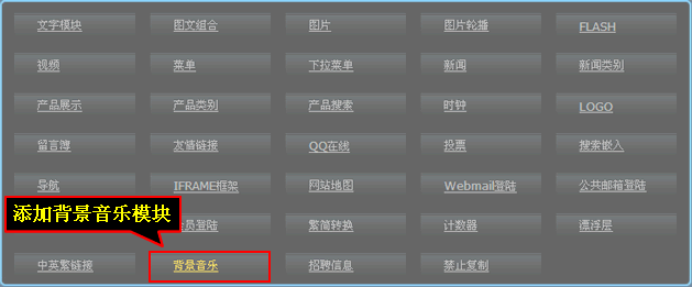 注意: 如果希望每一个页面都有背景音乐, 则把本模块放置在头部尾部等共享的区域. 如果只需要在首页有背景音乐, 则放在非共享的区域.